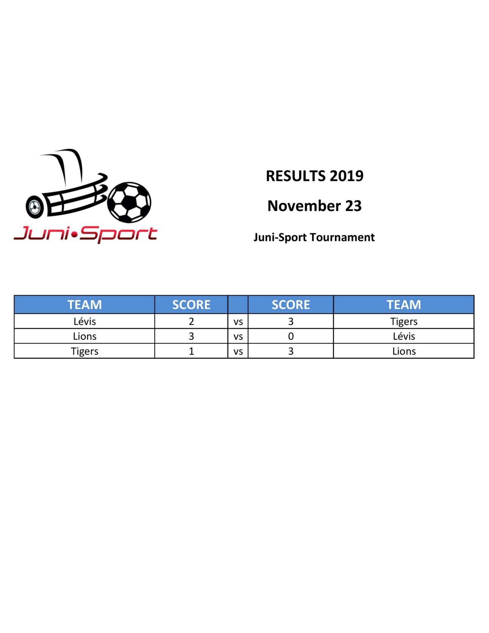 Results of Tournaments