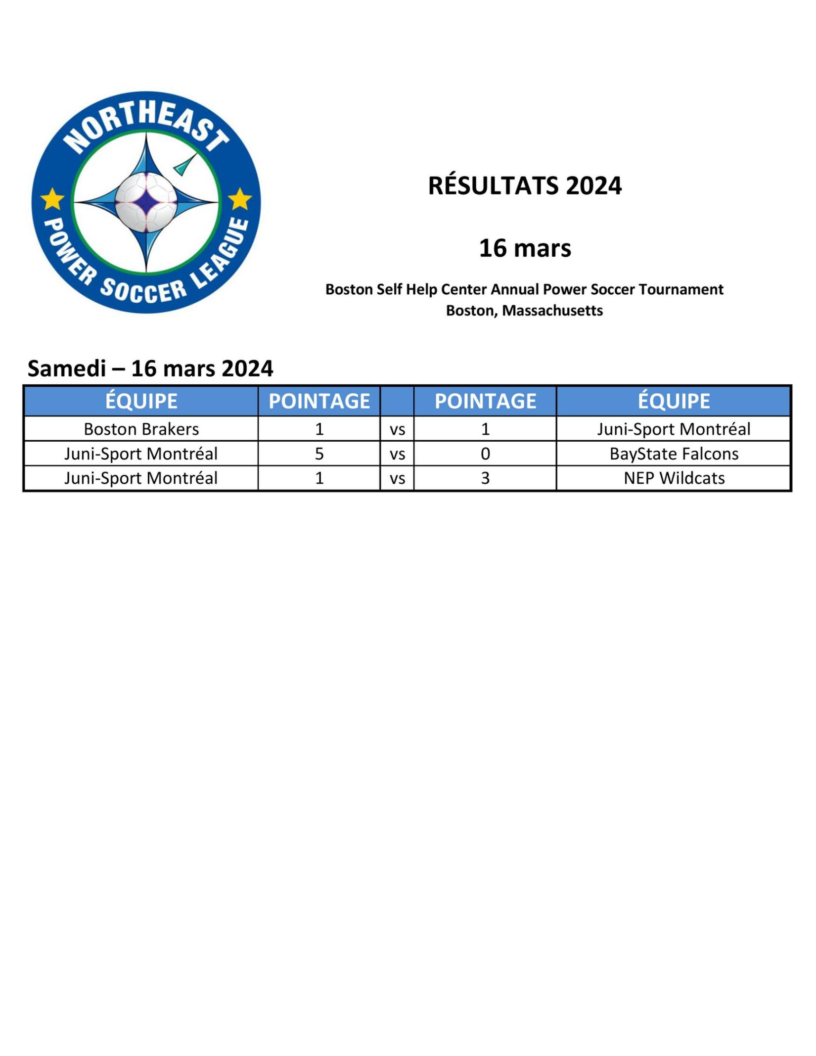 Résultats des tournois